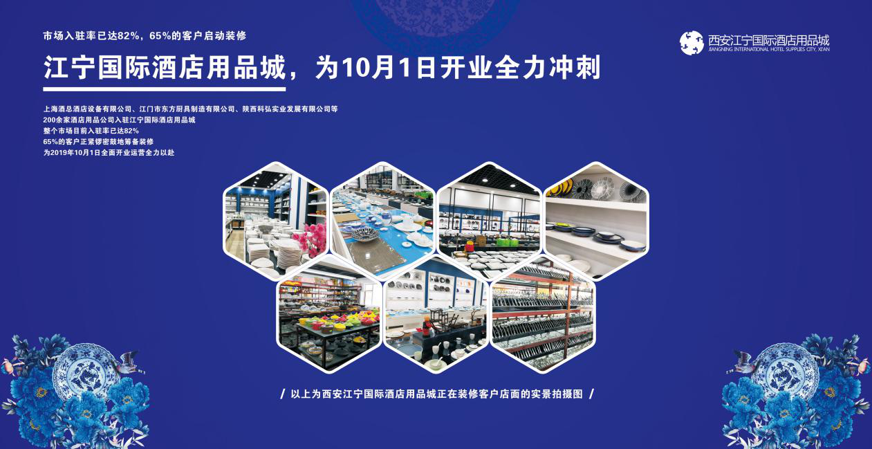 目前,上海酒總酒店設備有(you)限(xian)公司、江(jiang)門市(shi)東方(fang)廚(chu)具制造有(you)限(xian)公司、陜西科弘實業(ye)發展有(you)限(xian)公司等百余(yu)家酒店用(yong)品企業(ye)已(yi)(yi)入(ru)駐江(jiang)寧國際酒店用(yong)品城,市(shi)場(chang)入(ru)駐率已(yi)(yi)達到了(le)82%,65%的商戶(hu)已(yi)(yi)啟動(dong)裝(zhuang)修,計劃整個市(shi)場(chang)將于2019年10月1日實現滿鋪開業(ye)。未來(lai),項(xiang)目還將計劃引進海鮮、水產、佐料等業(ye)態。