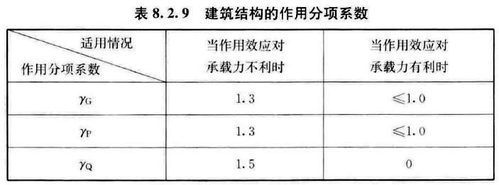 標準8.2.9 建筑結構的作用分項系數,應按表8.2.9采用。
