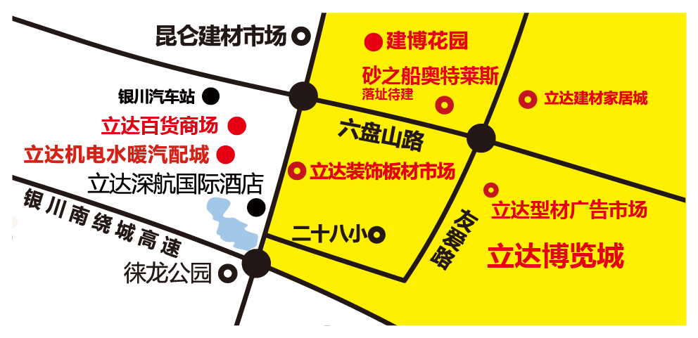 立達(da)博覽(lan)城(cheng)68#地(di),南至(zhi)規(gui)劃路(lu)(lu),北至(zhi)六盤山路(lu)(lu),東至(zhi)燕慶(qing)路(lu)(lu),西接交通(tong)物(wu)流(liu)(liu)要道友(you)愛路(lu)(lu),暢通(tong)四(si)方,收發貨方便,高(gao)效配送全(quan)國,同時市(shi)場內自配物(wu)流(liu)(liu),立達(da)型材(cai)廣告市(shi)場百(bai)(bai)米內配套大型物(wu)流(liu)(liu)園(yuan),百(bai)(bai)條線路(lu)(lu)暢達(da)全(quan)國,有效降低商戶運輸(shu)成本,提高(gao)配送效率,物(wu)流(liu)(liu)高(gao)效便捷。