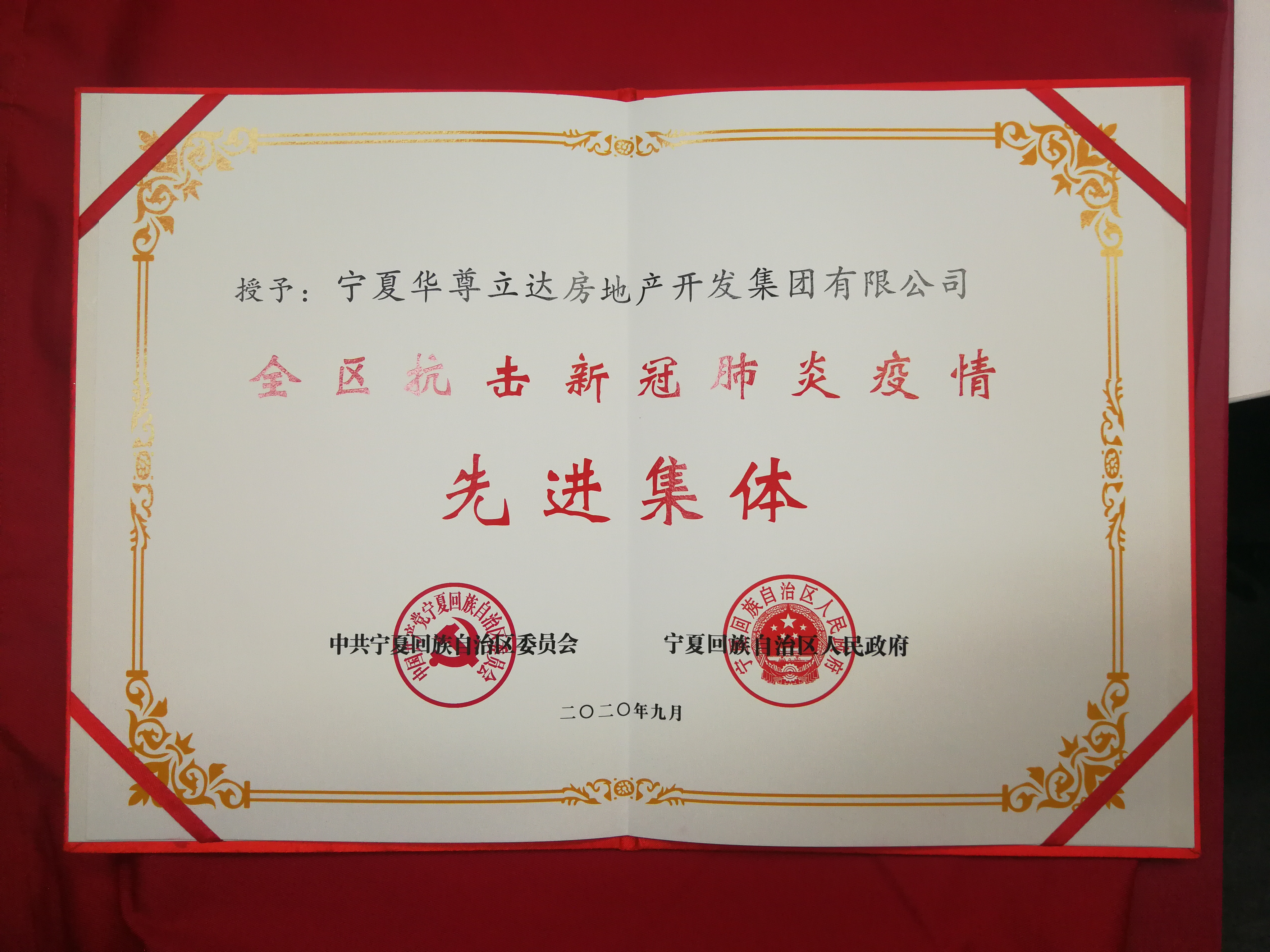 華尊立達集團榮獲自治區頒發抗擊新冠肺炎疫情榮譽稱號