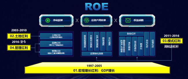 其實地產行業這么多年以來,一直在享受國家母體經濟發展的宏觀紅利。如果對比國內投資和國外投資,你會發現國內投資賺錢比國外投資賺錢多,因為經濟漲幅較高,各行各業都是水漲船高,都會帶來相應回報。由于各方政策、資源向行業傾斜,從2003年到2010年,地產行業享受了大量的土地紅利,從2011年往后土地紅利開始慢慢下降進入模式紅利,比如說高杠桿、周轉為王等等,到現在你會發現整個政策經濟面、住房供給匹配面到了一定高度之后,過往開發模式難以為繼,行業進入管理紅利時代。